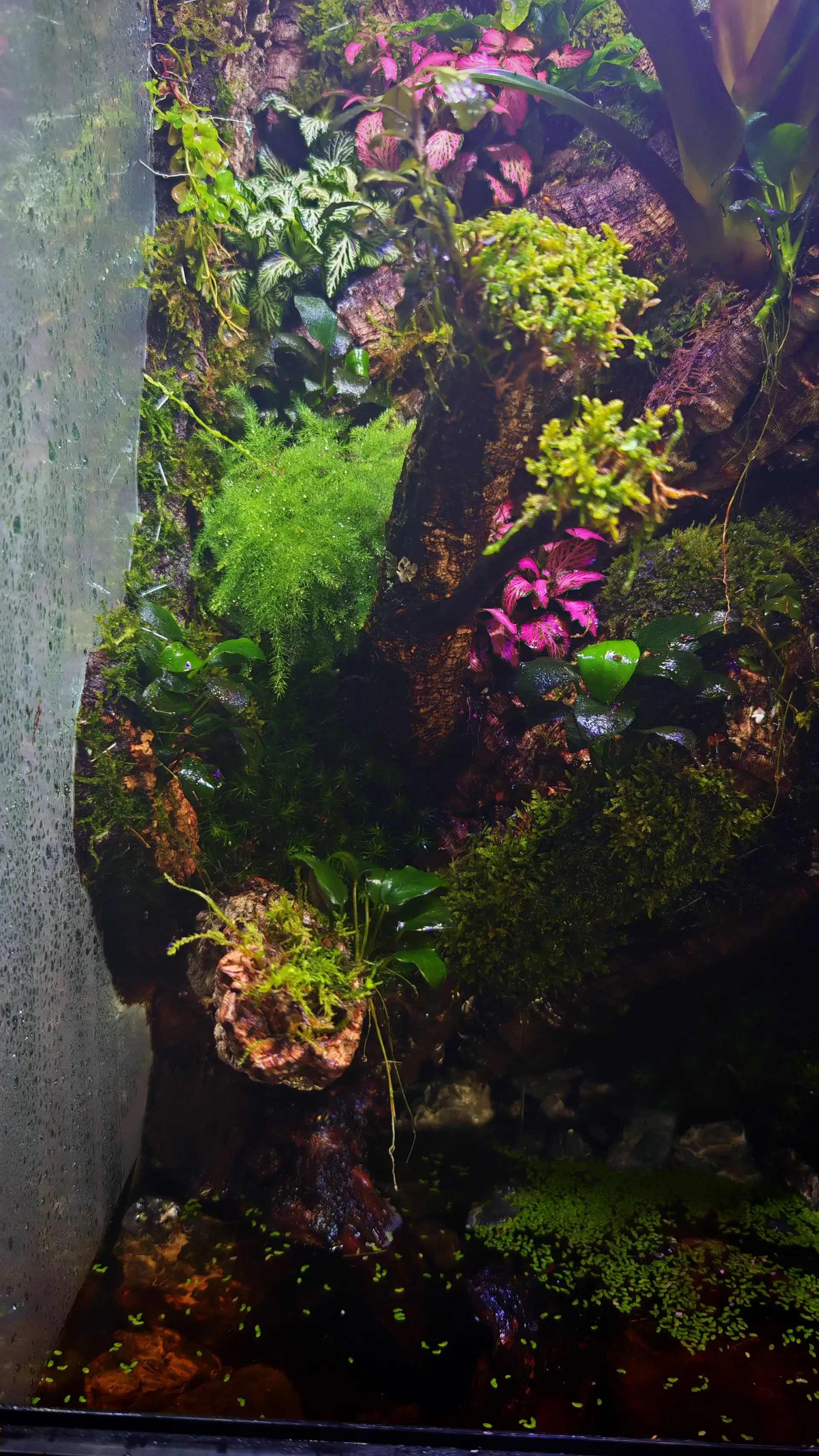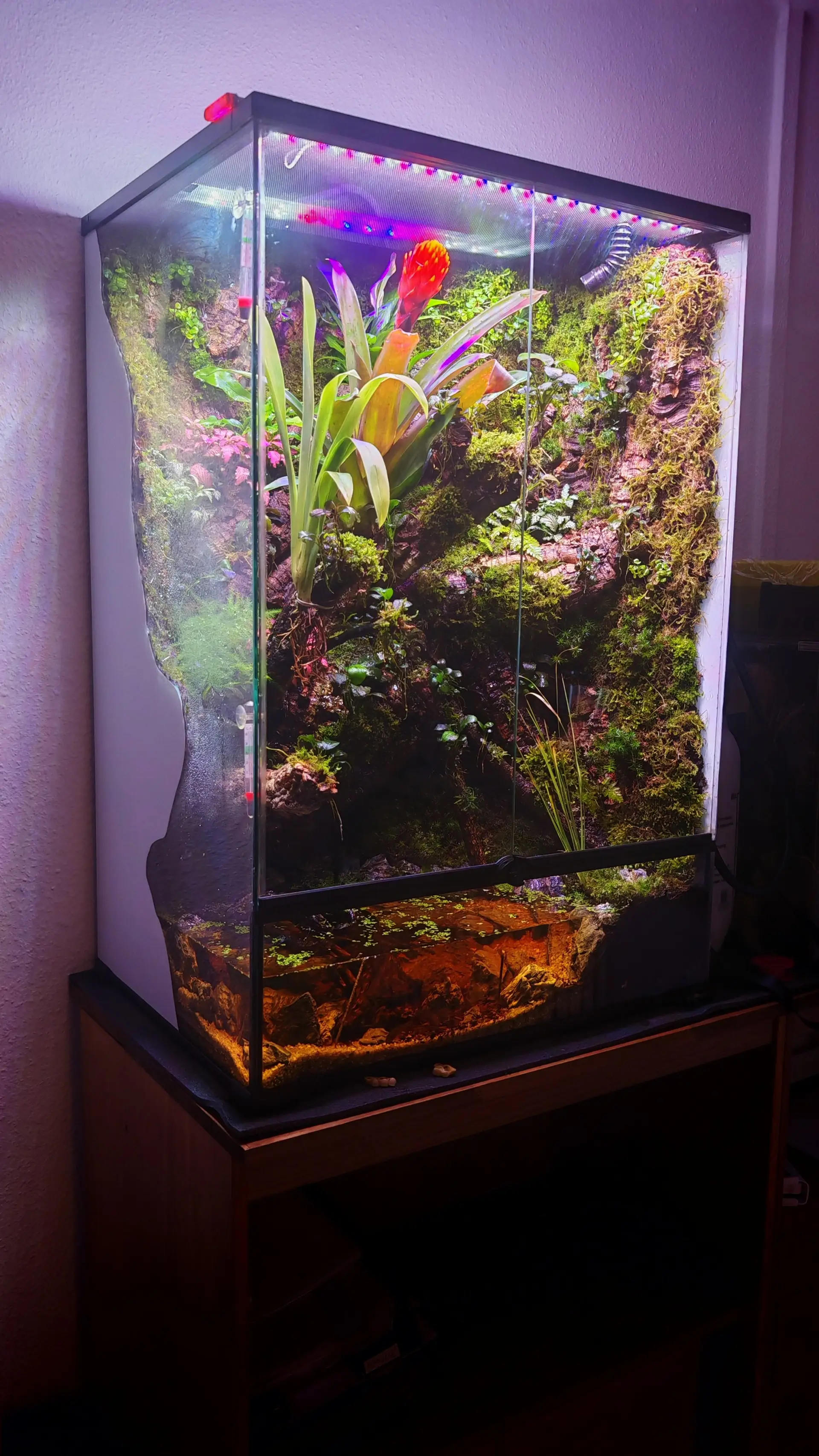 Popis: Akvária po neustálých bojích s řasami mě po 20 letech přestali bavit a rozhodl jsem si udělat doma takové paludarium pro pralesničky a Felsumu paví.