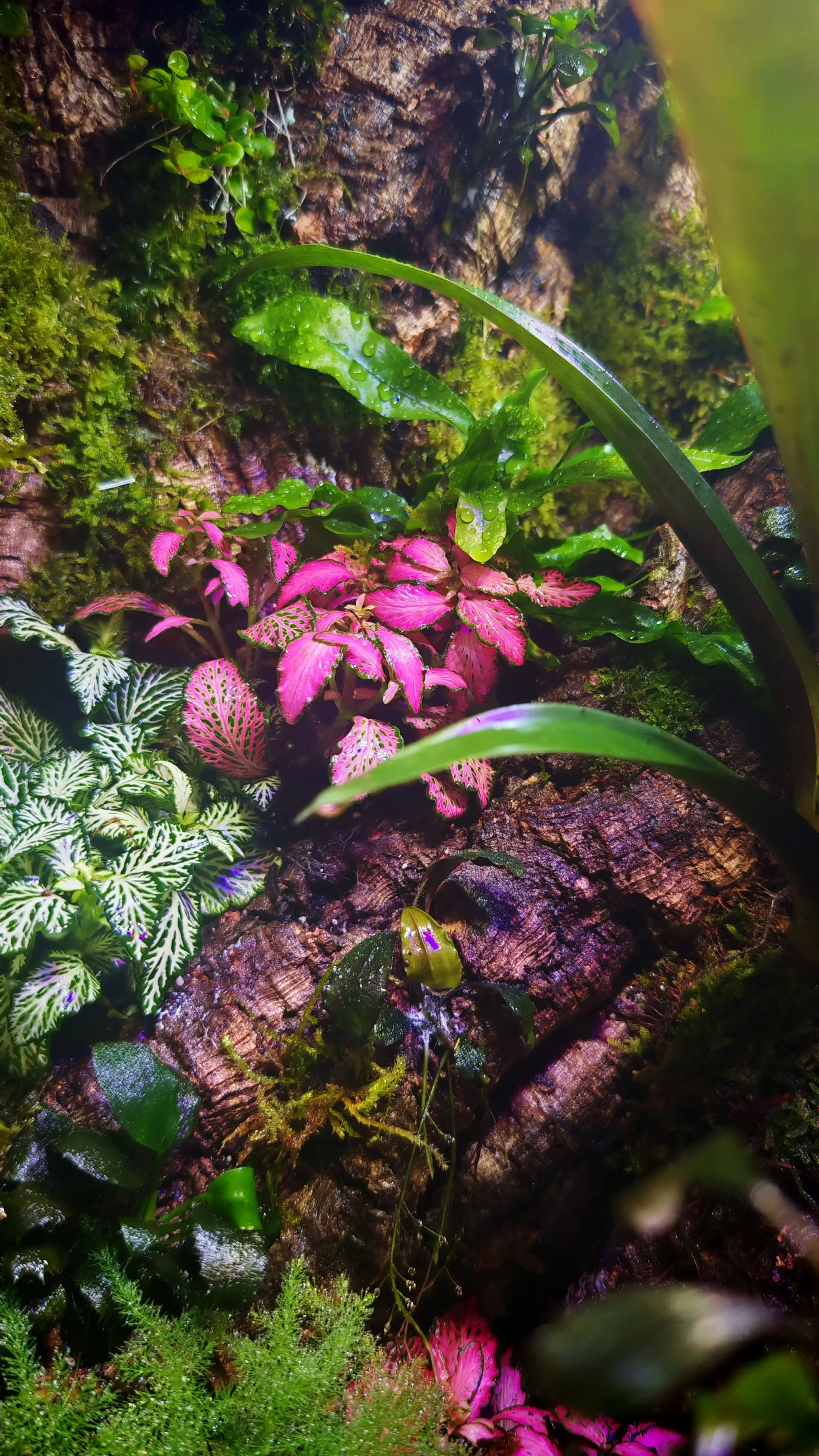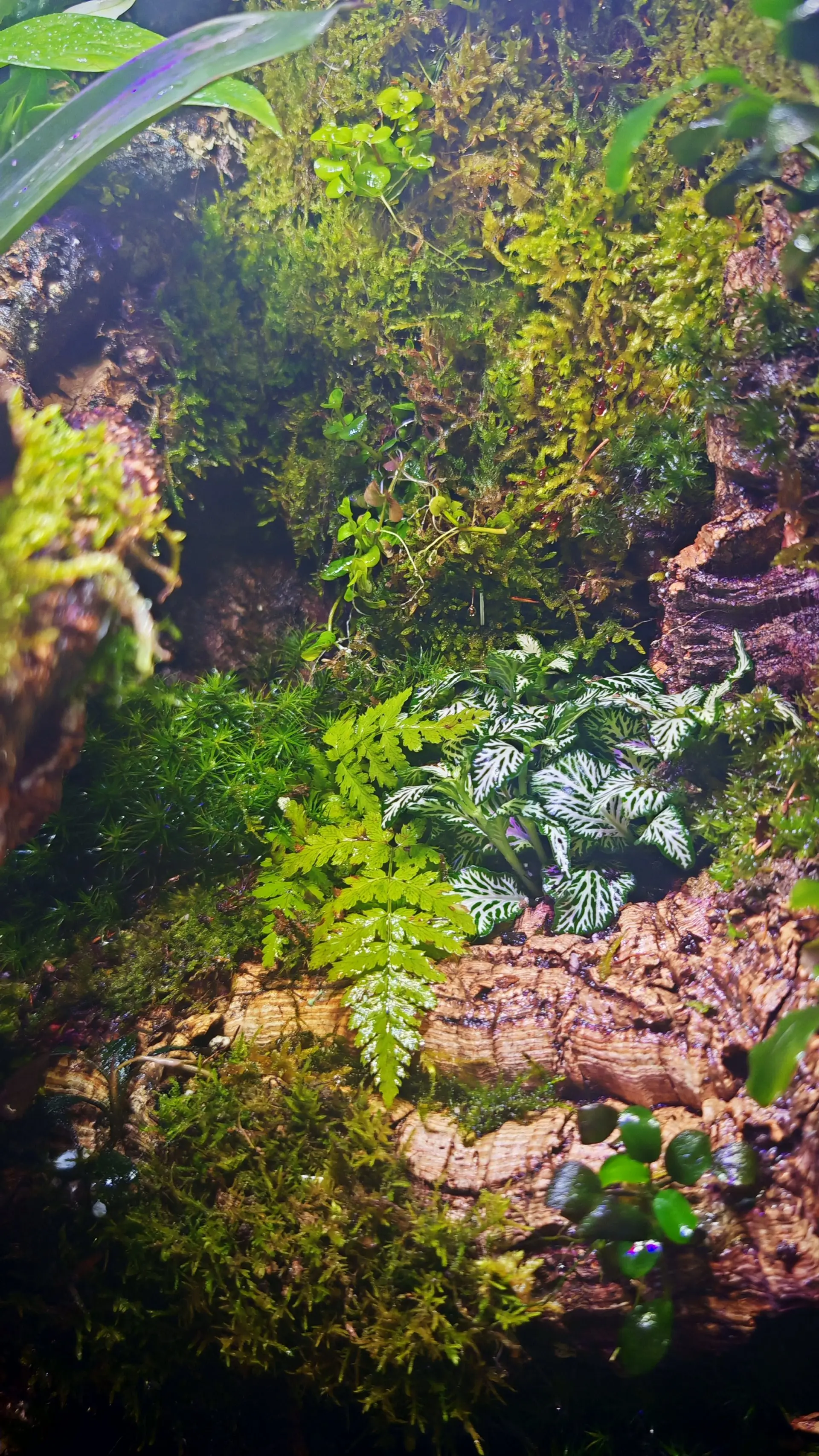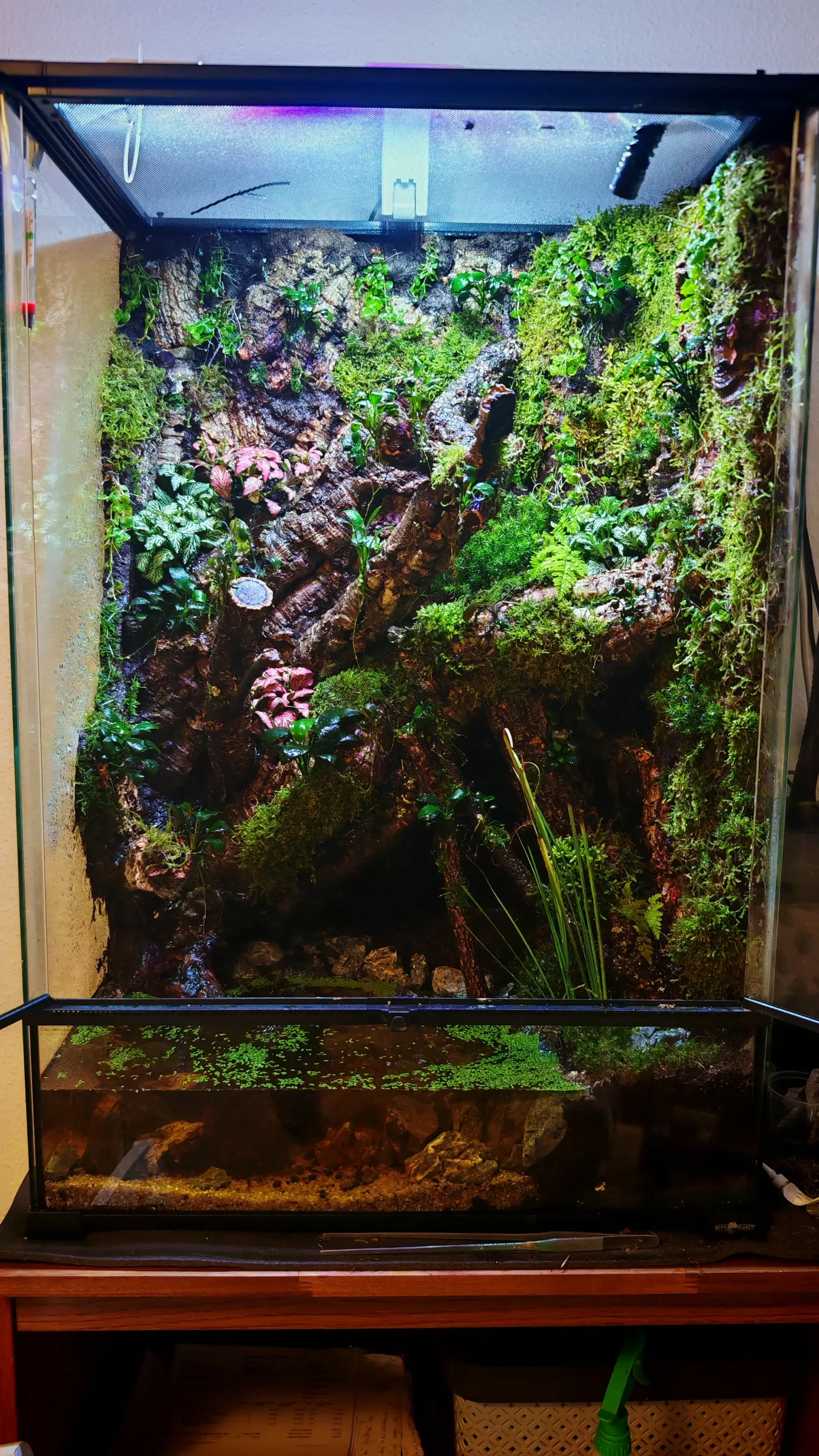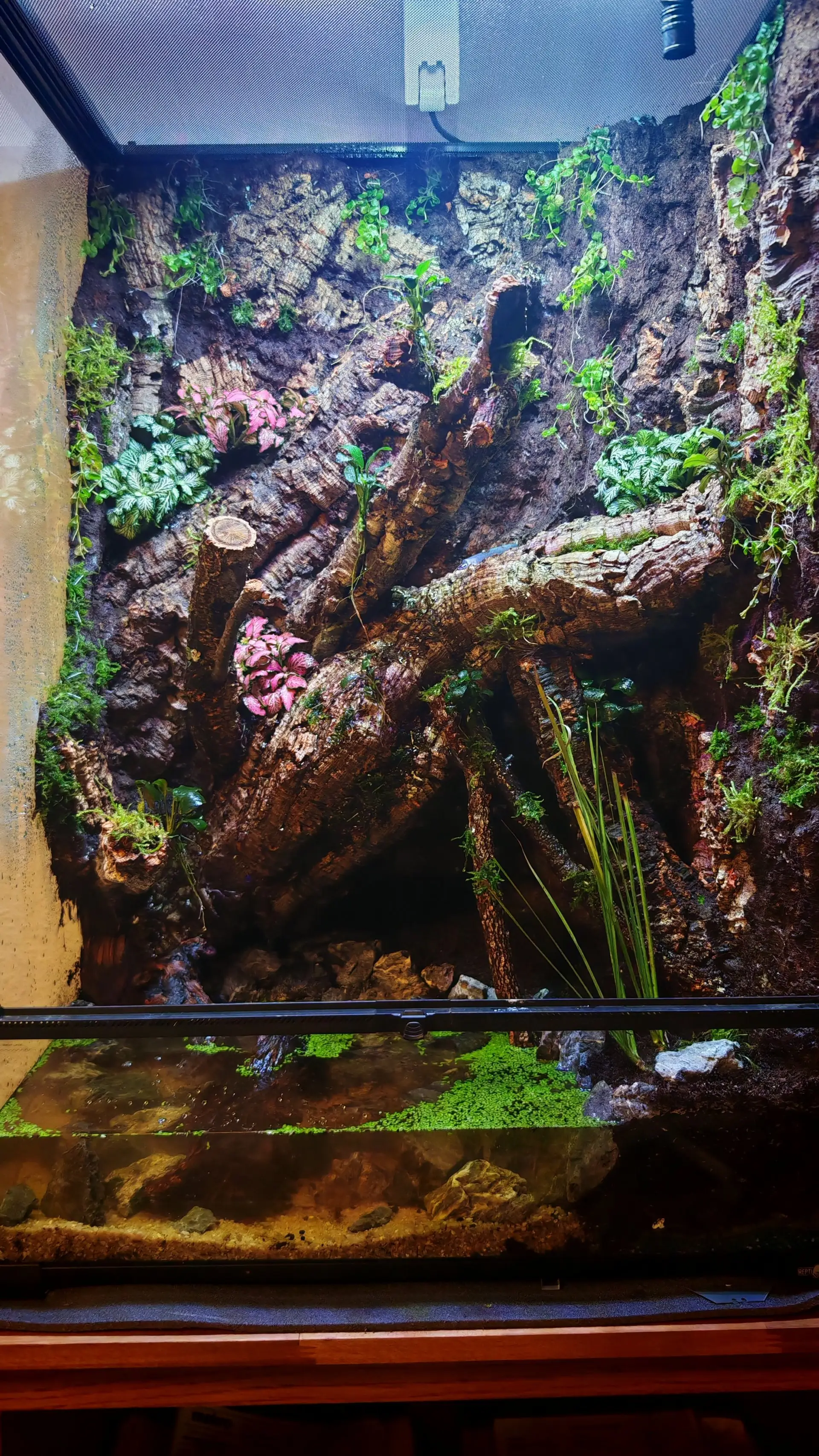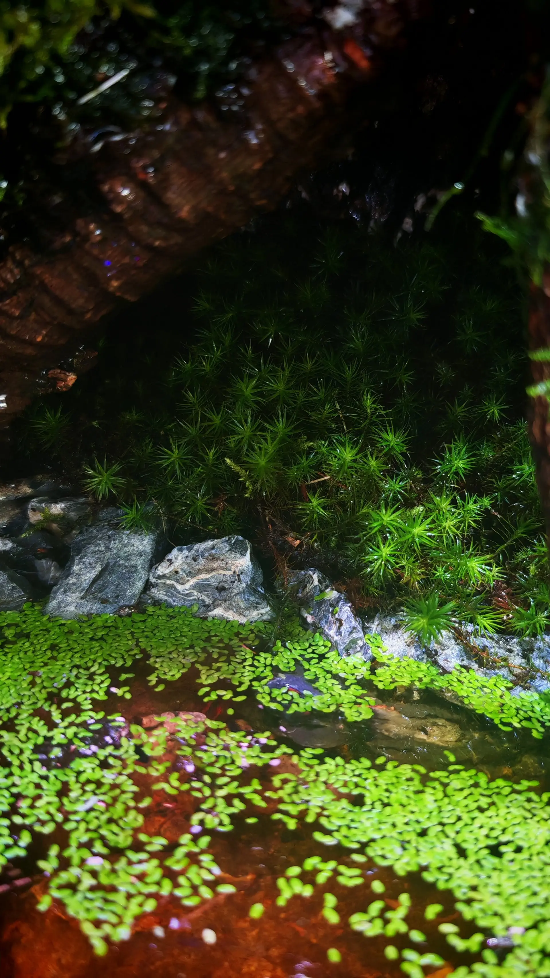 Poznámka: Mlhovač reptiplanet + lehký vodopád po kmeni pomocí čerpadla