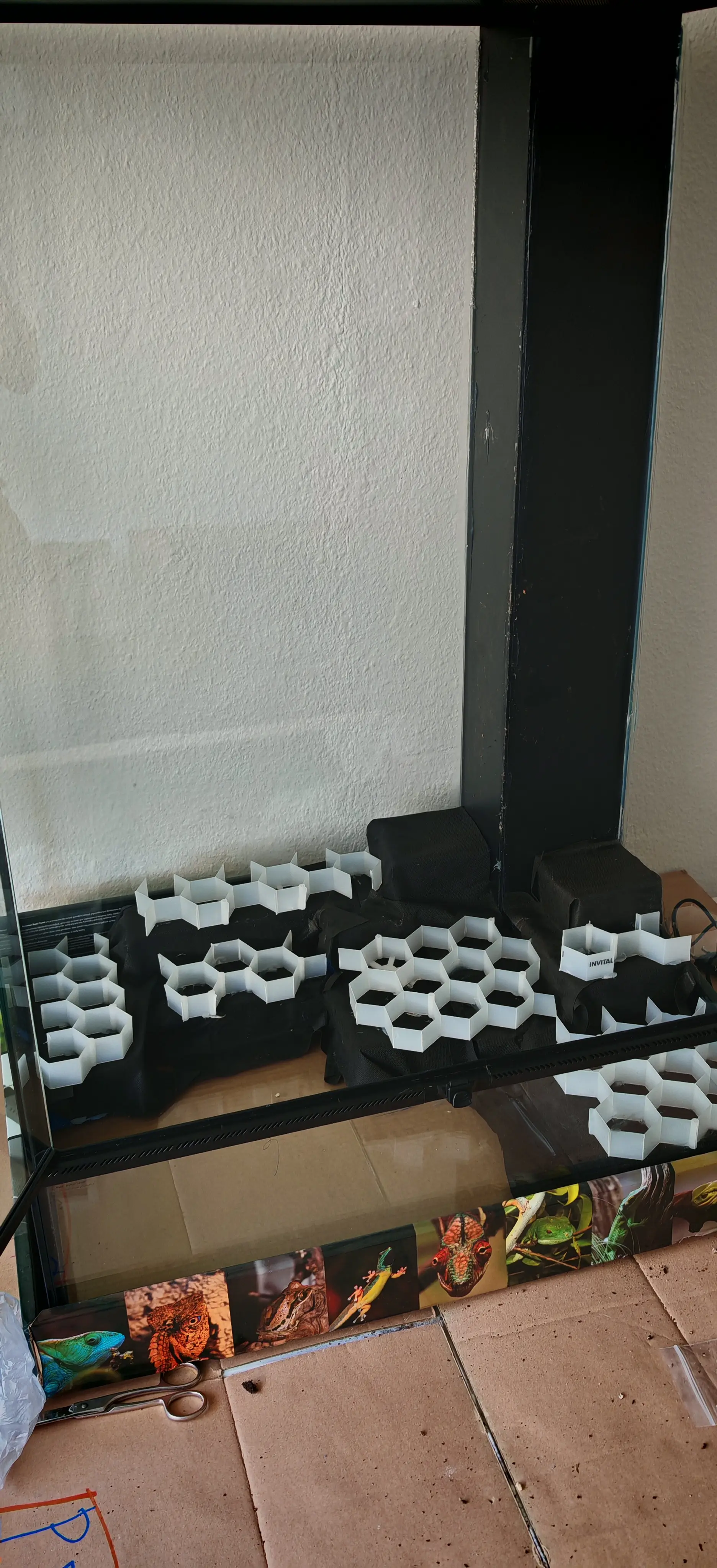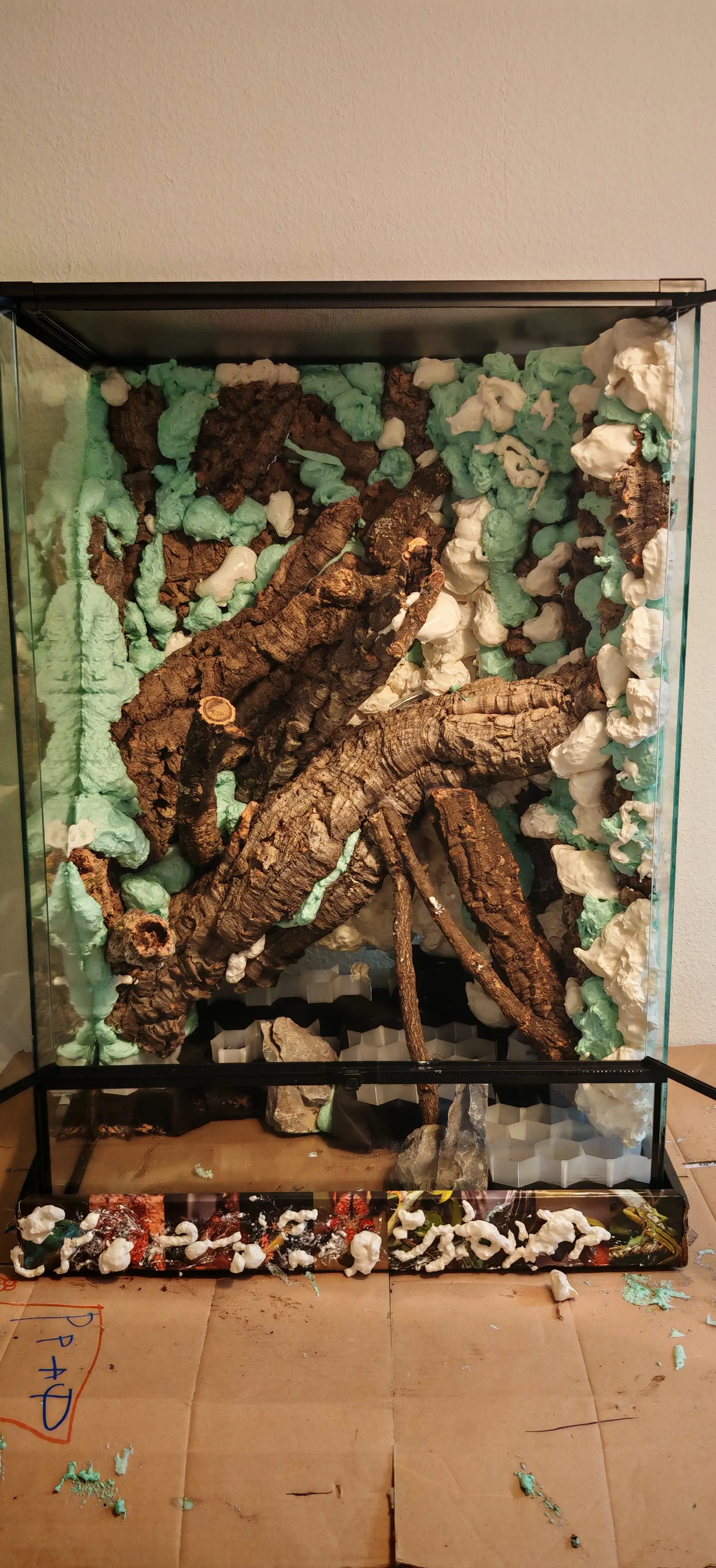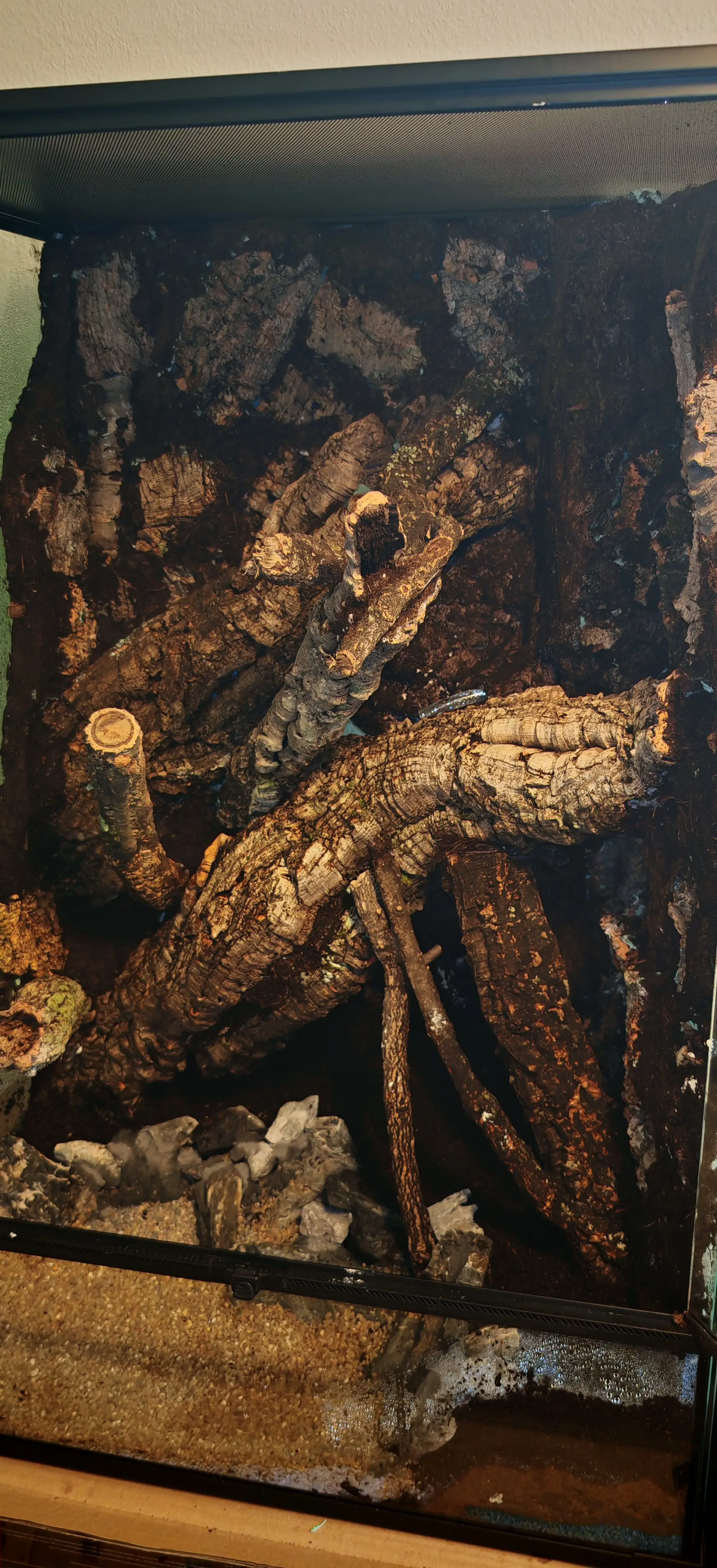 Dekorace: Korkové kmeny, Seriu stones, kremicity písek.